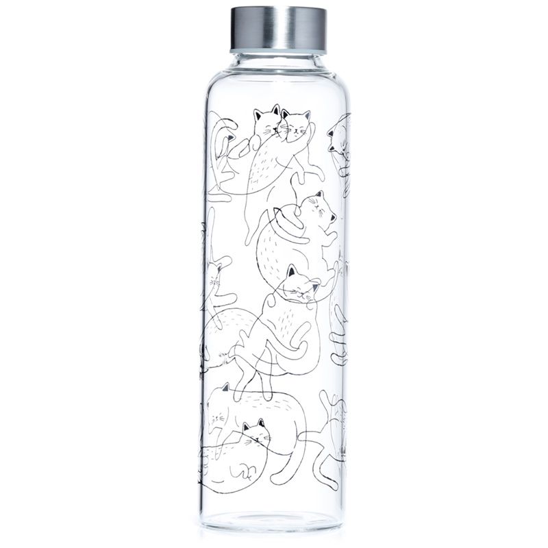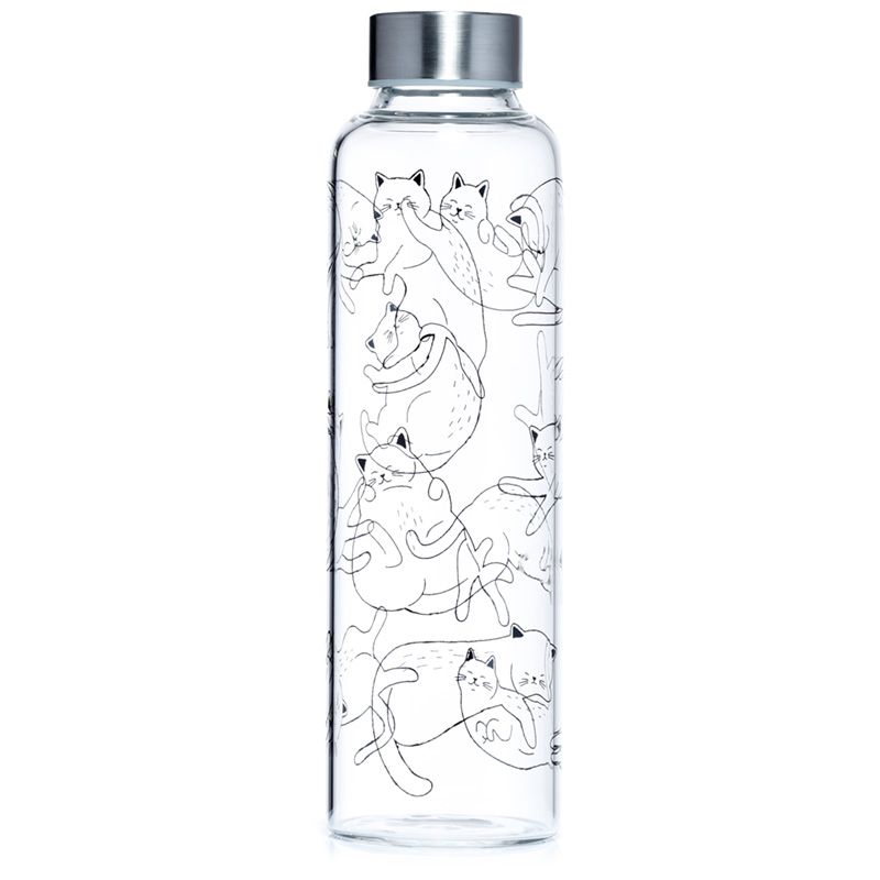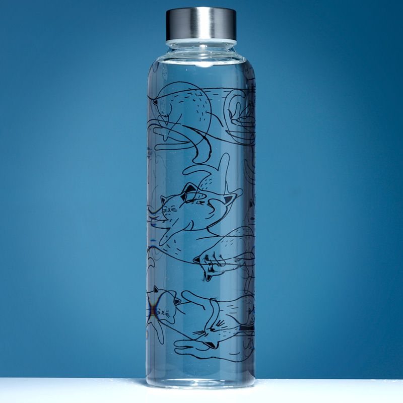 Üveg Palack Fém Kupakkal és Tartóval - Macskaélet