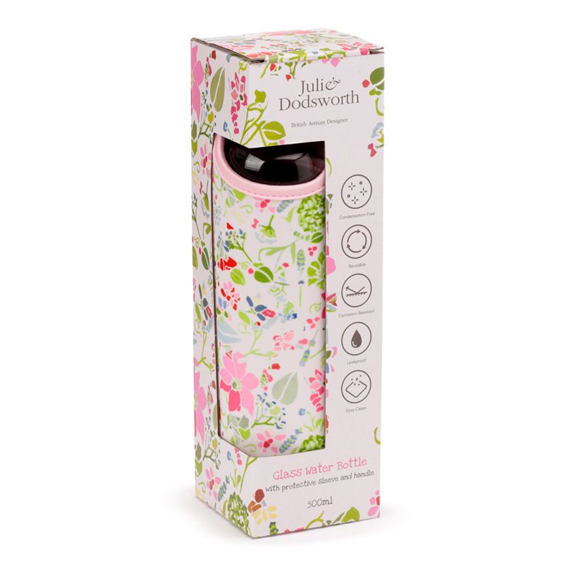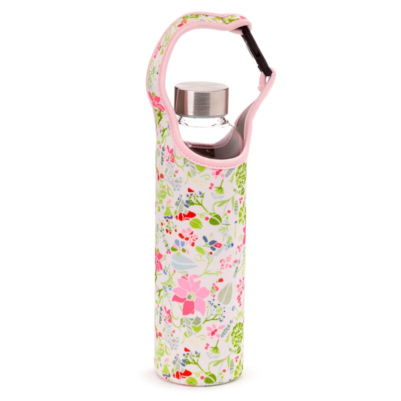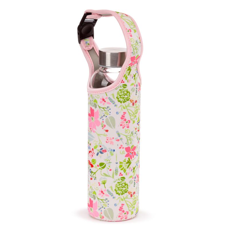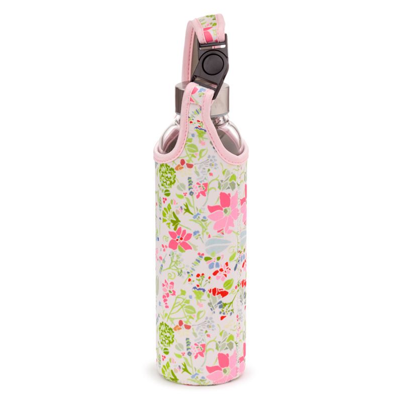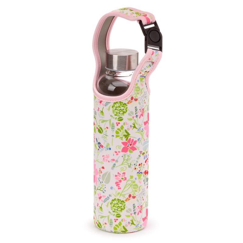 Üveg Palack Fém Kupakkal és Tartóval - Pink Virágos JULIE DODSWORTH