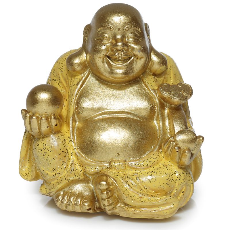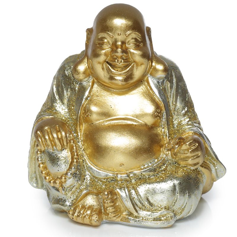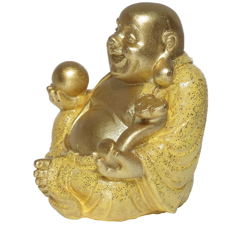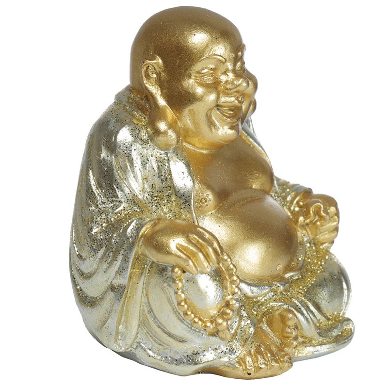 Szerencsehozó Mini Buddha - Arany Glitteres Kínai Nevető Buddha 6cm