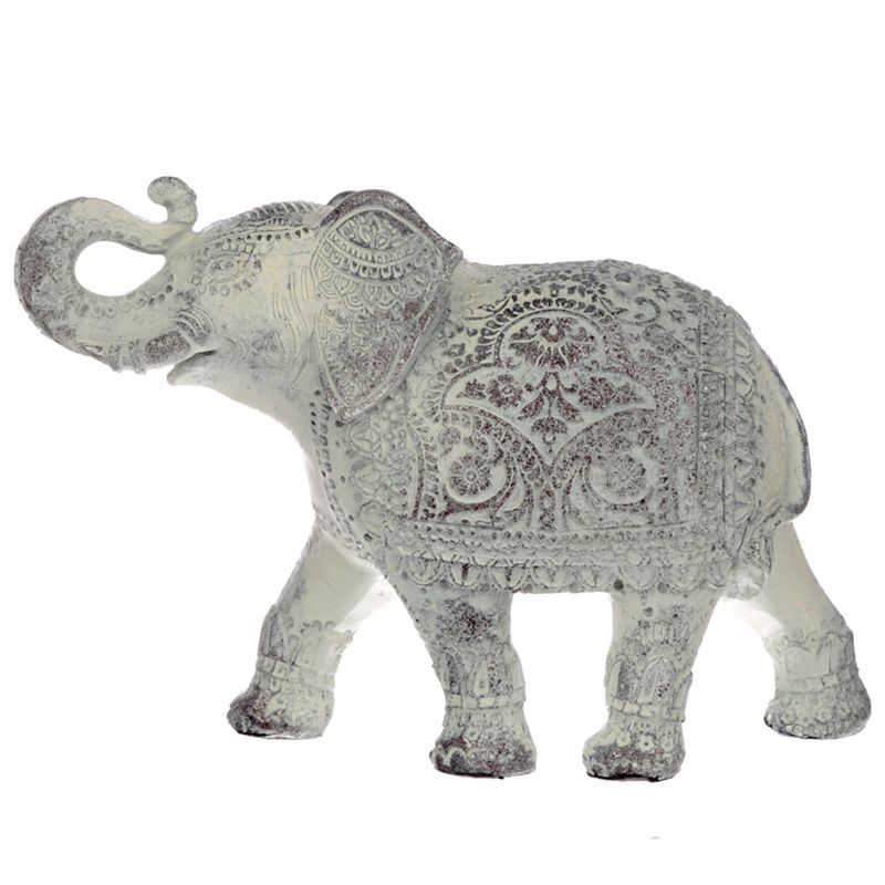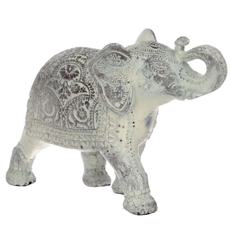 Thai Elefánt Figura - Csiszolt Fehér - Közepes