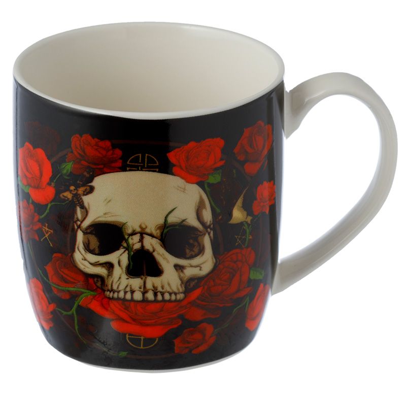 Porcelán Bögre Szűrővel és Tetővel - Koponyák & Rózsák