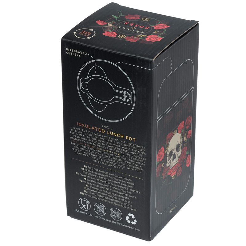 Thermo Ételhordó 500ml, Fém - Koponyák & Rózsák