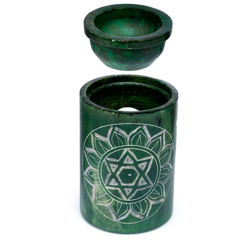 Zsírkő Csakra Aromalámpa - Faragott - Zöld
