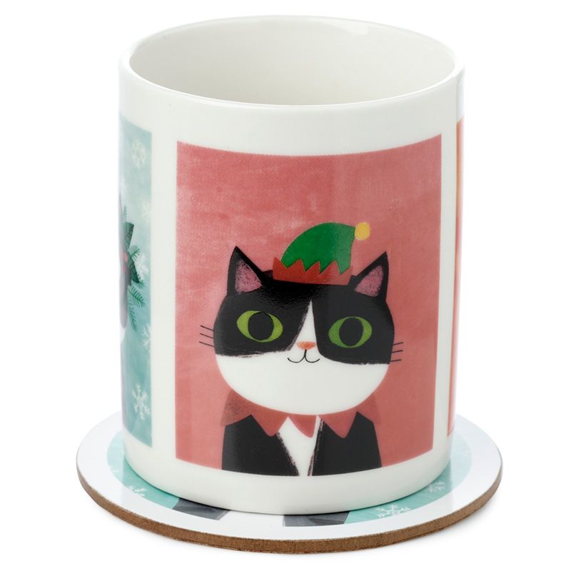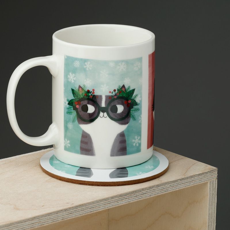 Bögre és Poháralátét Szett, Karácsonyi - Űrmacskák - Planet Cat - Angie Rozelaar