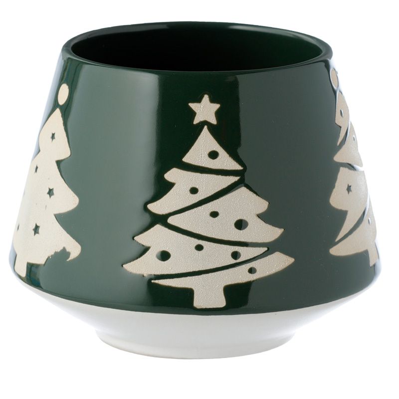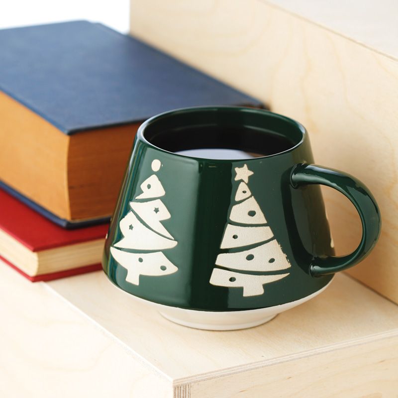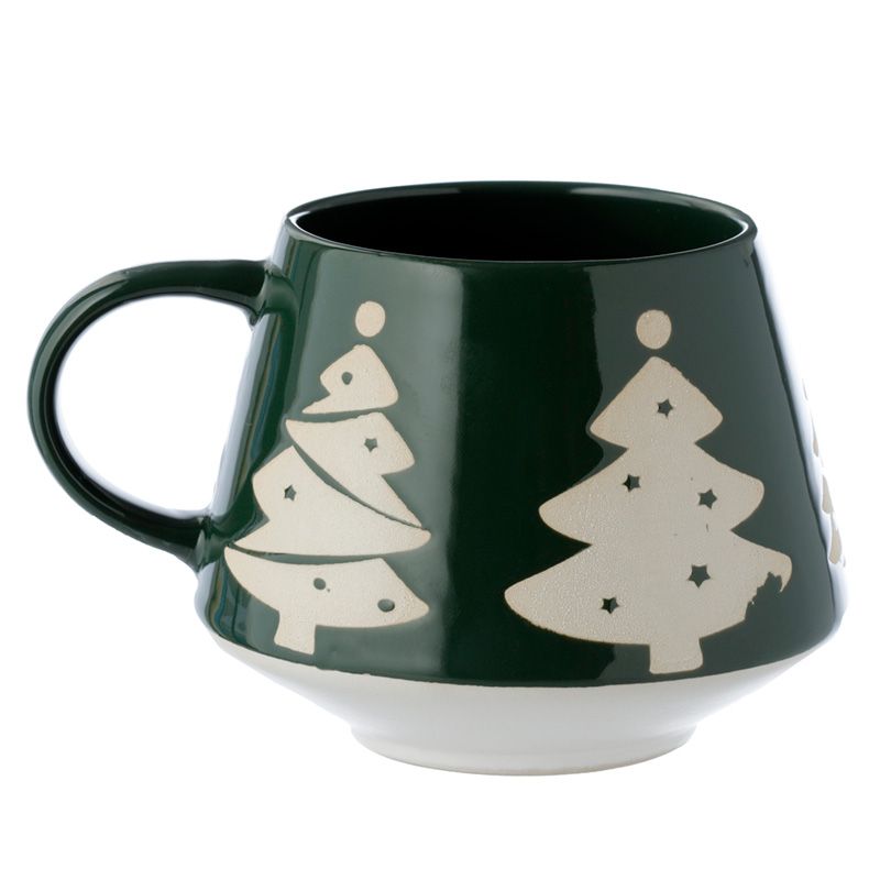 Bögre, Kő Kerámia, Karácsonyi - Zöld Mázzal - Karácsonyfa