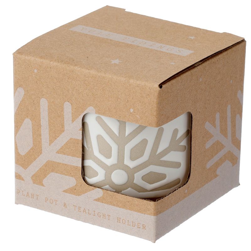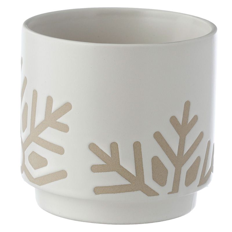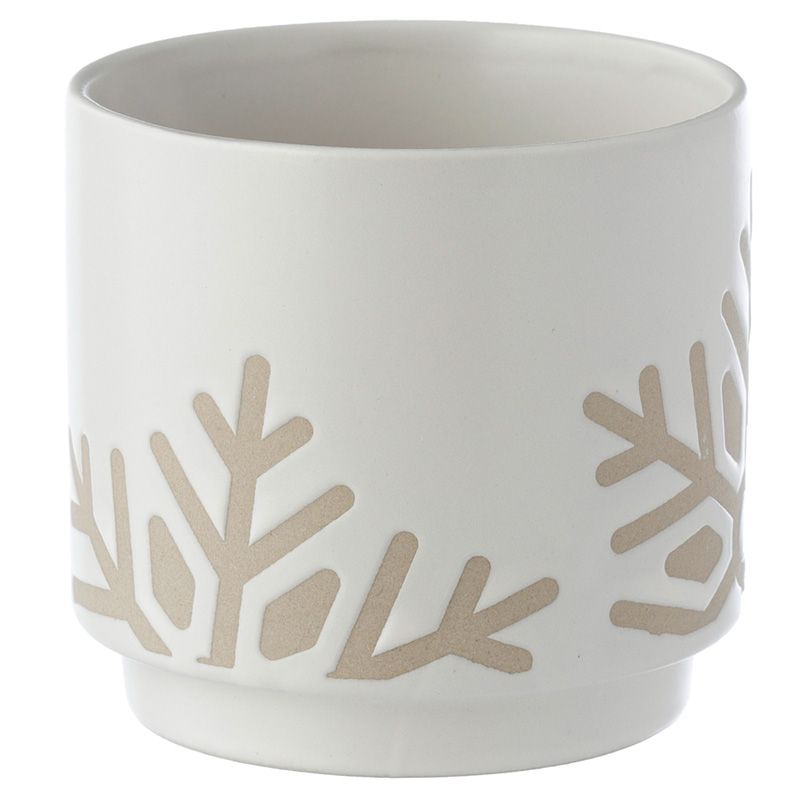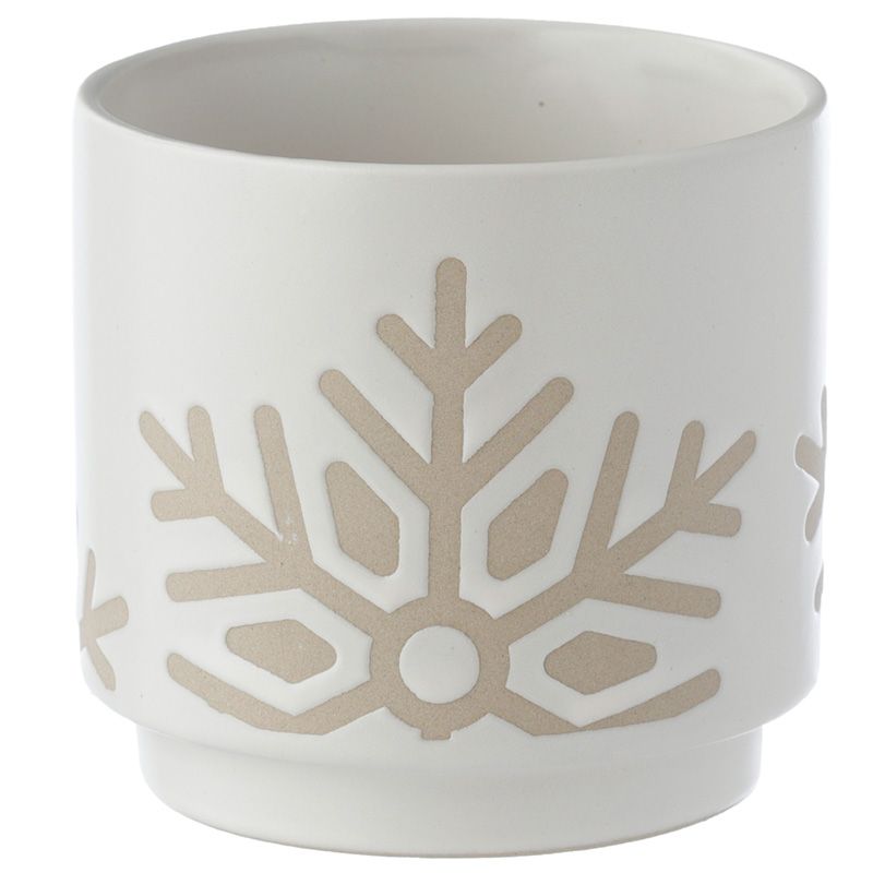 Kő Kerámia Virágcserép, Beltéri, Karácsonyi - Kicsi - Fehér Máz - Hópehely